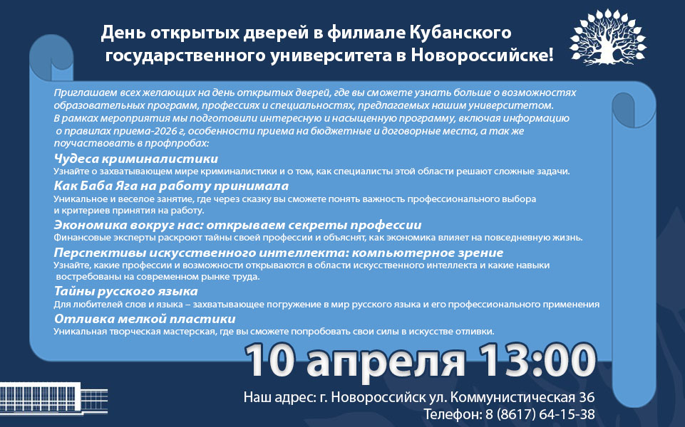 Филиал начинает прием документов 20 июня 2026 г. О правилах приема можно узнать в приемной комиссии, на сайте КубГУ и сайте филиала в разделе «Абитуриенту».