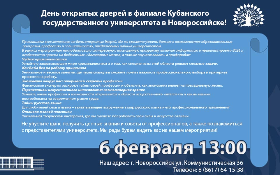 Филиал начинает прием документов 20 июня 2025 г. О правилах приема можно узнать в приемной комиссии, на сайте КубГУ и сайте филиала в разделе «Абитуриенту».